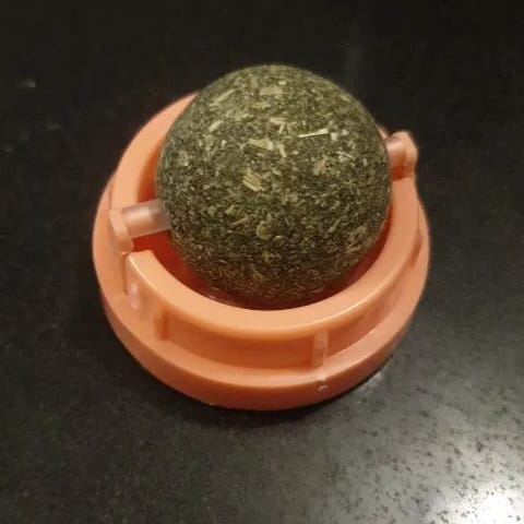 This rotatable catnip ball is 1.8” wide and 1.45” tall and comes with a stick-on base and protective dust cover. Made with high-quality plastic and filled with fresh, sealed catnip, it’s designed to keep your cat active, engaged, and happy. The rolling ball offers a playful twist on traditional catnip toys and can help promote dental health and stress relief too.